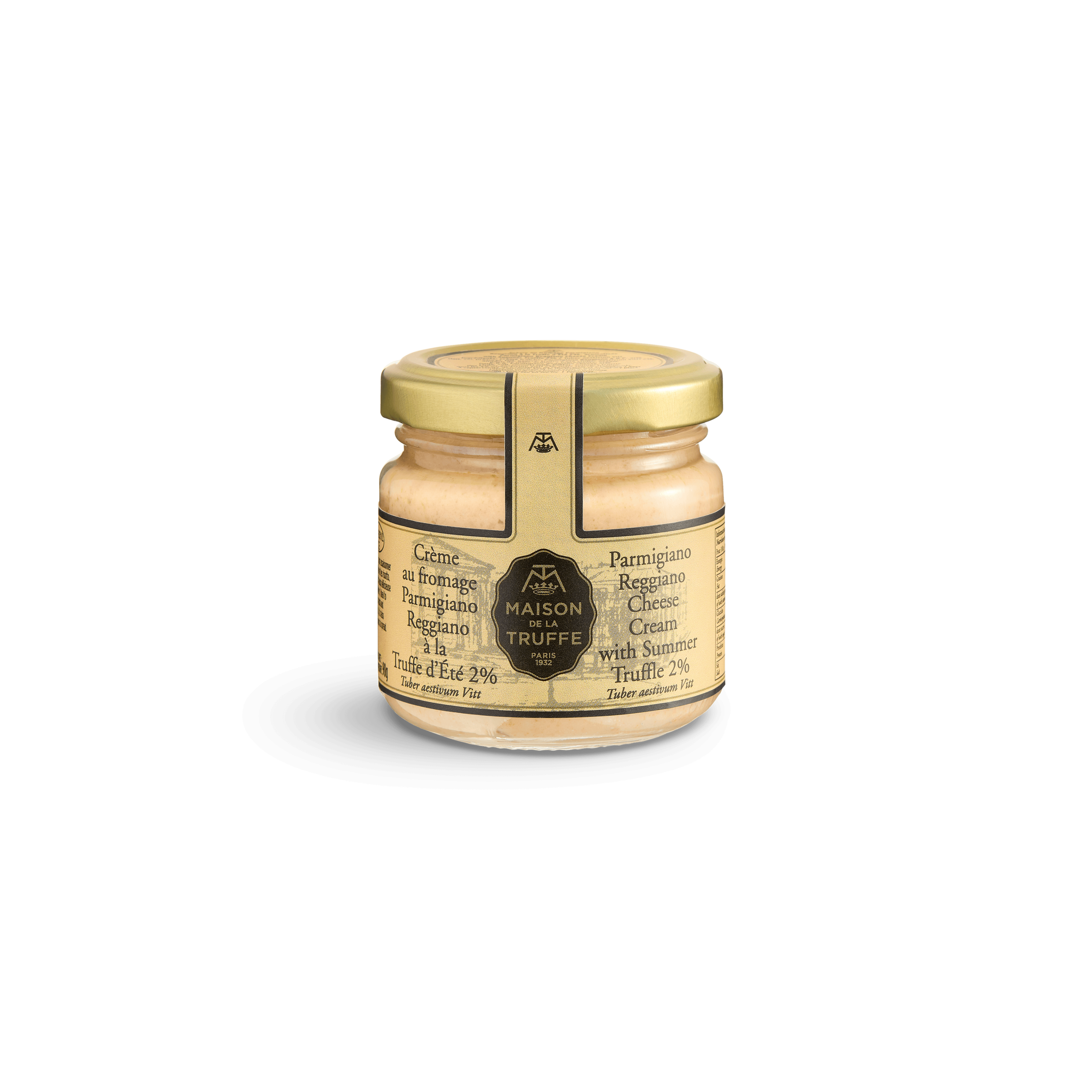 La Crème de Parmesan à la Truffe d’Été est un ingrédient polyvalent d’une richesse aromatique considérable : une crème élaborée à partir de crème fraiche, de Parmigiano Reggiano DOP à 31% — le véritable parmesan à appellation protégée — de lait, de beurre et de truffe d’été italienne Tuber Aestivum. C’est la sauce qu’on soul haite avoir en permanence dans son réfrigérateur.